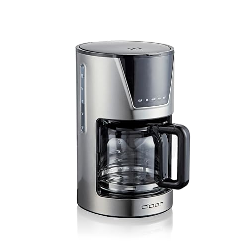 Cloer 5257 Filterkaffebryggare För 12 Koppar, Glasbehållare, Värmehållning, Lcd-Touchdisplay, Timer, Aromval, Måttsked, Vattennivåindikator, Droppstopp, Filter 1X4, 900W, Rostfritt Stål