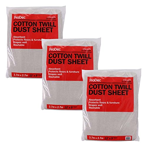 ProDec 3-pack 12ft x 9ft bomullsdammlakan för dekoration, mattskydd - tvättbar droppduk, färgskydd, målarduk, kraftiga dammlakan för möbler, målarduk