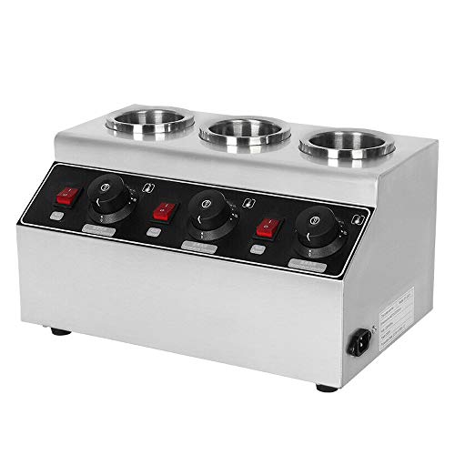 Såsvärmare, 3 kastruller rostfritt stål såsvärmare, håller såser varma, 30 °C – 85 °C 240 W chokladvärmare, chokladvärmare, konditorisylt, matvärmare sås värmare, med 3 klämflaskor