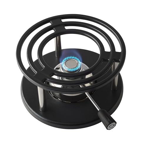 Kisag Rechaud BLACK CAST Ø 20 × 11 cm med säkerhetsgasbrännare 1,1 kW, värmare gjutjärn och rostfritt stål för fondue, flamma steglöst justerbar, lätt att rengöra, Swiss Design matvärmare