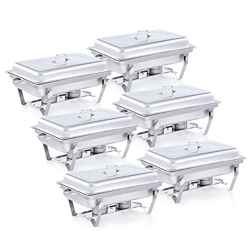 Wilprep Chafing dish, varmhållningskärl, värmebehållare i rostfritt stål, matvärmare, värmeplatta för catering, buffé och fest (6 set x 9 l)