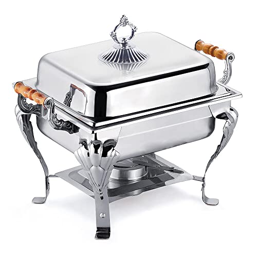 Chafing Dish-set, rostfritt stål varmhållningsbehållare med lock handtag, matvärmare, värmebehållare, matbehållare för bröllop, fester, banketter, catering, evenemang (liten kvadrat, alkoholhaltig matspis)