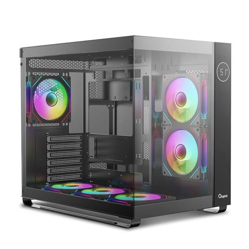 darkFlash MATX Gaming PC-fodral med skärm, tre sidoglas mikro-ATX-fodral, böjd dubbel vy med full sikt, 3 PWM ARGB-fläktar datorfodral förinstallerat, typ C, RTX 40 kompatibel, svart (L280M)