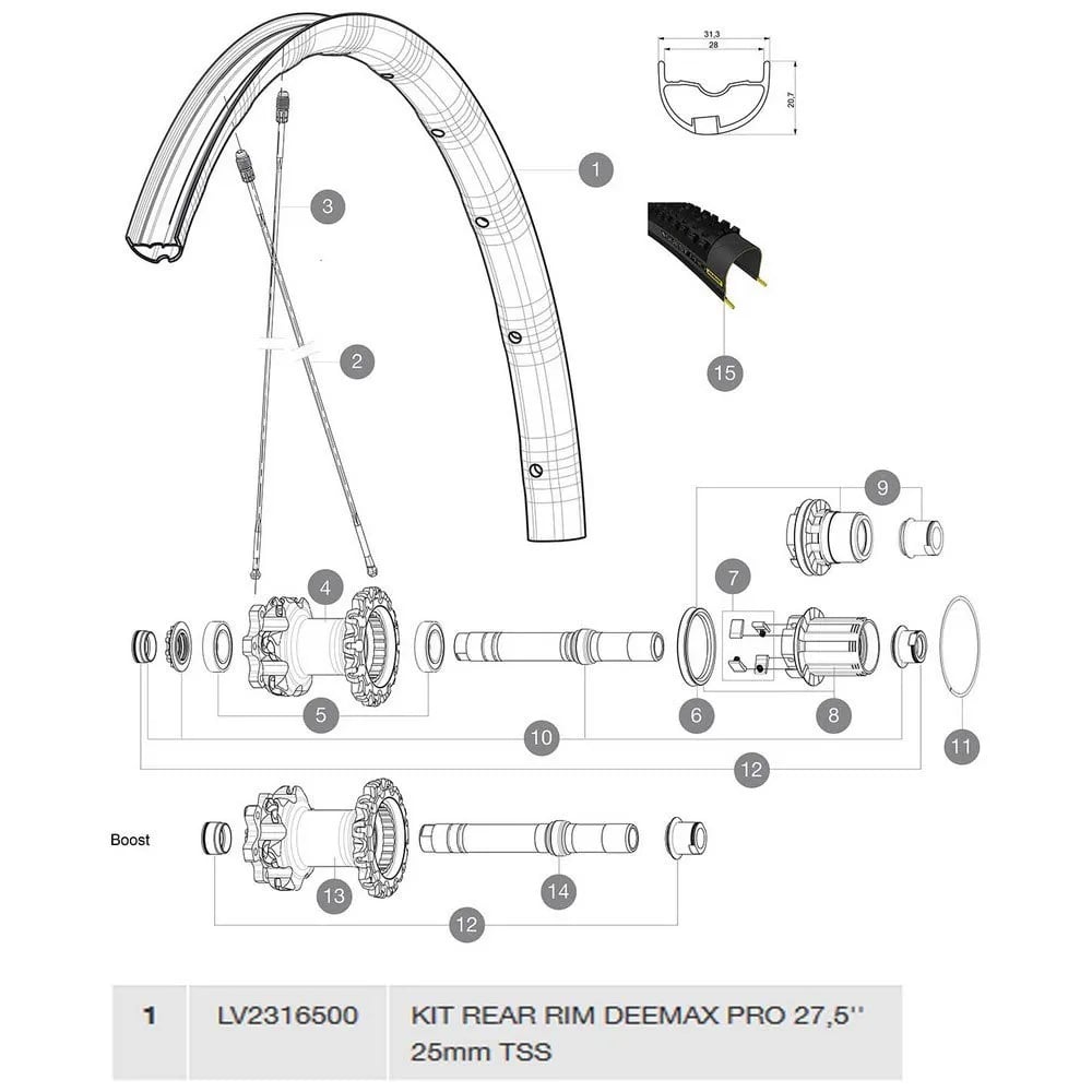 Mavic Deemax Pro 19 Rear Rim Kit Svart 650B 27,5´´ 2