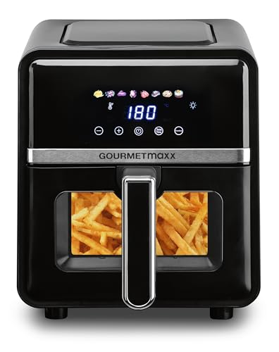 GOURMETmaxx Airfryer varmluftsfritös, 5 l, fritös med 6 funktioner, 8 program, miniugn, fettsnål mat för max. 4 personer, varmluftsfritös med färgskärm och funktion