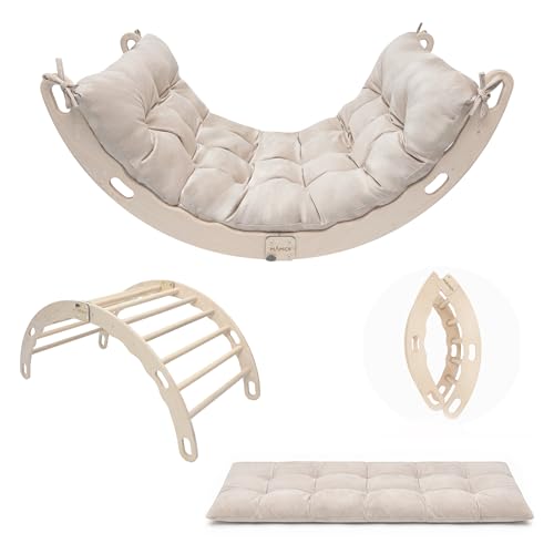 MAMOI® Trägunga med dyna, hopfällbar multifunktionell konstruktion, båge för träning och avkoppling, stege och fritidsgunga, universell konstruktion för inomhusbruk