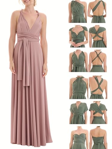 Juvell Brudtärna Klänning - Infinity Dress Maxi - Klänning med omlott - Bandeau Topp ingår - Formell-Afton-Kvälls-Bröllop-Prom - 1000 (34-38, Gammal Rosa)
