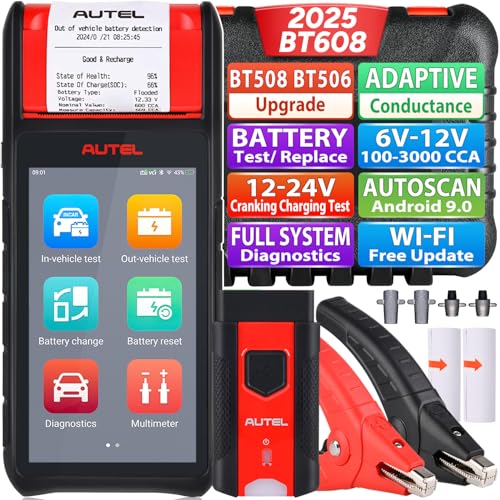 Autel MaxiBAS BT608 (E) 2-i-1 Batteritestare, 2024 Up of BT508/ BT506, Adaptiv Konduktans (Värd 1000+), Startladdningstest som BT609, Batteriåterställning, MK808S/ MX808S KomplettaSystem