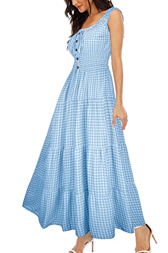 OSTOO Women's 2025 Summer Boho Floral Print Tiered Casual Flowy Long Maxi Dress(Blue Plaid,XXL)