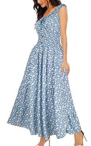 OSTOO Women's 2025 Summer Boho Floral Print Tiered Casual Flowy Long Maxi Dress(Blue,M)