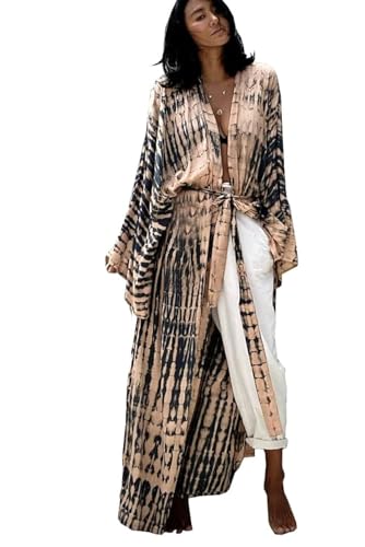 YouKD maxi-kimono-klänning, boho-cardigan, morgonrockar, strandtäckningar, bikini-badrockar, E Svart Aprikos, en storlek