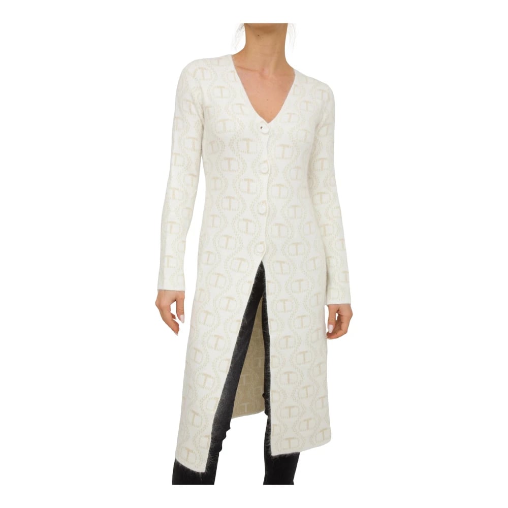 Twinset, Stickade Tröjor , Dam, S, Bomull, Oval Maxi Cardigan i Vitt