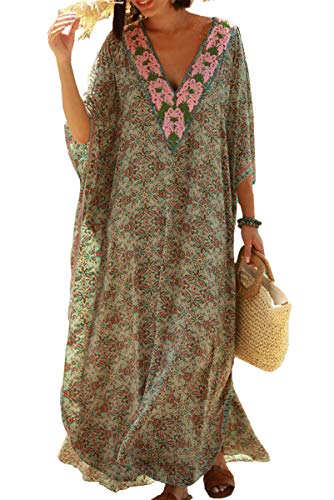LikeJump Cardigan för kvinnor, bohemisk kimono, baddräkter, kaftan, täcka över bikini, sommar, strandklänning, maxi-toppar, Mörkgrön, en storlek