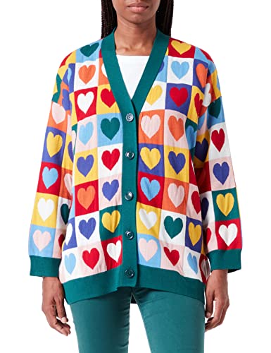 Love Moschino Kvinnors långfodrad maxi cardigan, flerfärgade hjärtan, 48