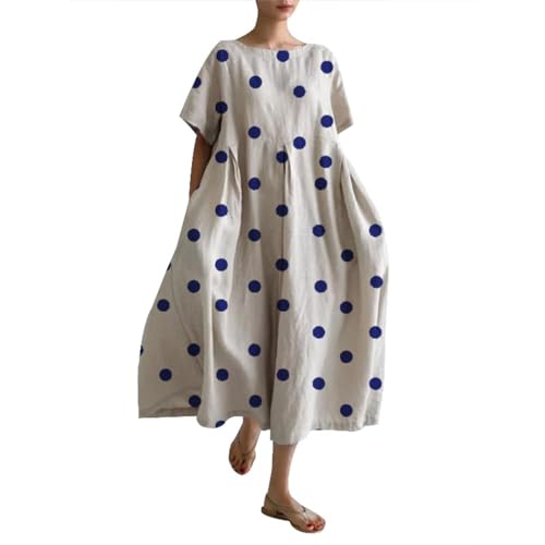 XuanXmy Dam boho dam sommarklänningar med fickor casual plus storlek linne maxiklänning Flowy Long Dress Fasion, Färg 25, XXL