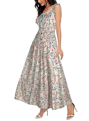 Ostoo Damklänning för sommaren 2025 med blommönster i boho-stil, flödande lång maxiklänning i flera lager, Benvit, XXL