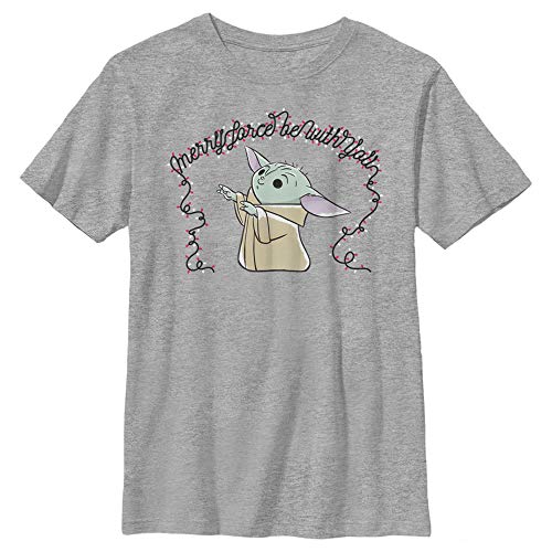 Star Wars The Mandalorian Christmas The Force Be with You Boys T-shirt, atletisk Heather, X-Small, Atletisk ljung, XS