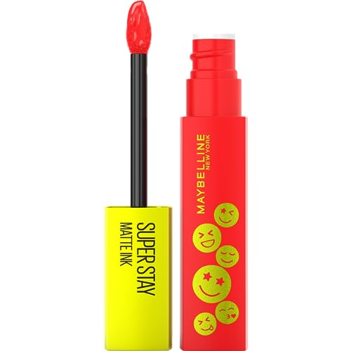 Maybelline New York flytande läppstift med matt finish, 16 timmar grepp utan färgning, vegansk formel, Super Stay Matte Ink Moodmaker, nr 445 Energizer, 5 ml