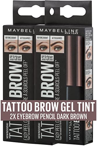 Maybelline New York ögonbrynsfärg i dubbelpack, Tattoo Brow Gel Tint, med Peel-Off Formula, nr 3 Mörkbrun, 2 x 5 ml