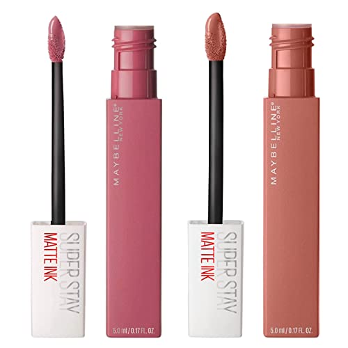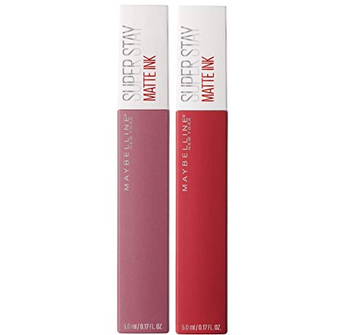Maybelline New York Make Up Kit Matt Lip Ink, Långvarig Flytande Läppstift, Inga fläckar, Matt, Lover (15) + Pioneer (20), 5 ml, förpackning med 2