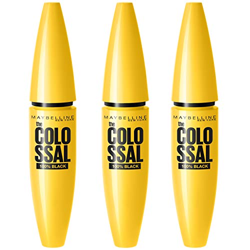 Maybelline New York Volum' Express The Colossal 100% svart mascara vattentät, (3 x 10 ml)