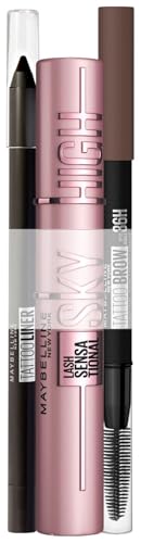 Makeup-set för en perfekt ögonlook, med Sky High Mascara, Hyper Easy Liquid Eyeliner (nr 800 Black) och Tattoo Brow 36H ögonbrynspenna (nr 07 Deep Brun), 3 delar