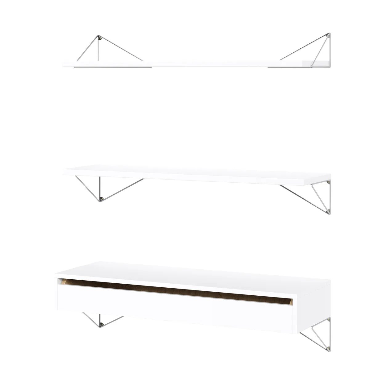 Maze Pythagoras Hyllpaket 3 Hyllplan, Vit / Krom MDF