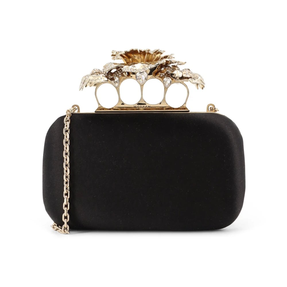 Alexander McQueen, Väskor , Dam, ONE Size, Mocka, Svart Väska med Strass Smyckad Kedja