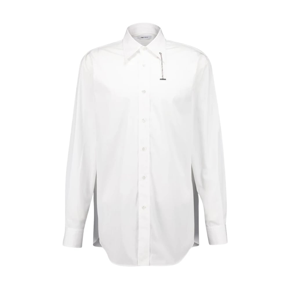 Alexander McQueen, Skjortor , Herr, M, Bomull, Vit Bomullsskjorta med Cross-Bar Kedja