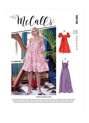 McCalls sömnadsmönster M8108A5 saker>klänningar, 6-8-10-12-14, A5
