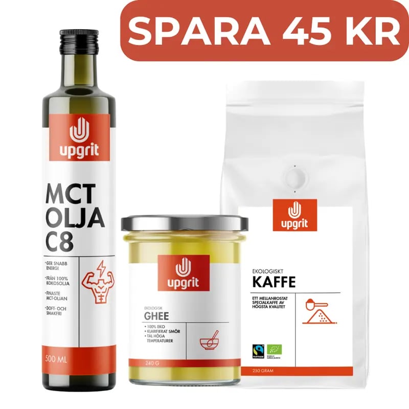 Upgrit Kaffepaket - Ekologiskt (malet) specialkaffe, C8 MCT-olja & ekologiskt ghee