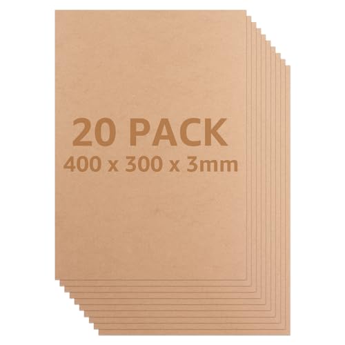 AHAQU 20 st MDF träskivor 3 mm tjocka trä gör-det-själv hantverk projektbräda, 40 x 30 cm MDF tomma ark för målning, modellering, gravering, grepparbete, konst