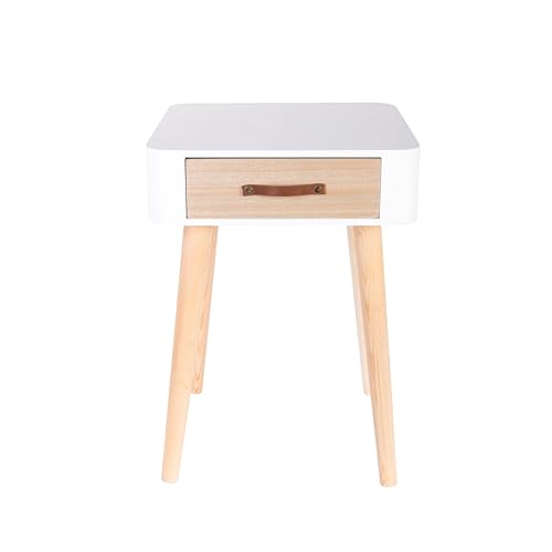 WOLTU TS111ws-1 Sängbord Sidobord Soffbord Med Låda Och Ben, Trä, MDF, Vit