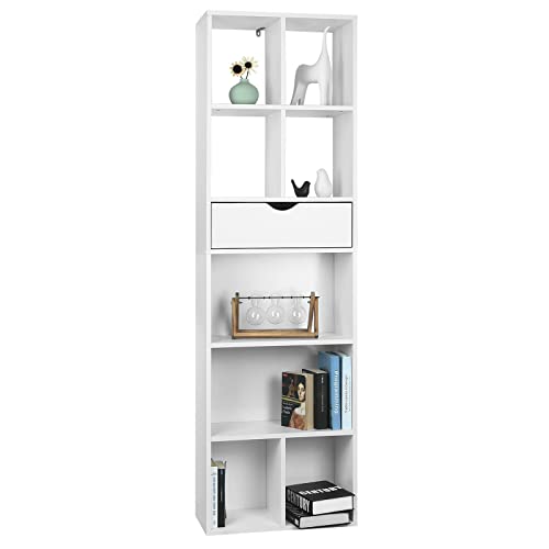 EUGAD Bokhylla Bokhylla Rumsavdelare Arkivställ Förvaringshylla Stående Hylla med MDF-låda, 8 fack, Vit, 50x24x168cm 0013SHG