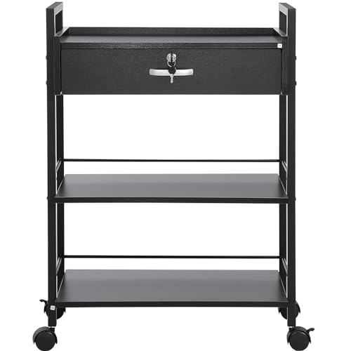 VEVOR skönhetssalongvagn, 3-nivås frisörsalong stationer skåp för stylist med låsbar låda, MDF rullningsförvaringsstation med 4 hjul (2 låsbara) för Beauty SPA barbershop tatuering