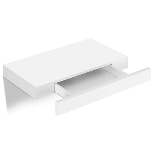 Tidyard MDF vägghylla, böcker/DVD-hylla, hängande hylla med 1 låda, osynligt monteringssystem, förvaringshylla, hängande hylla, väggskåp, väggbräda för böcker, samlarobjekt, smycken, vit