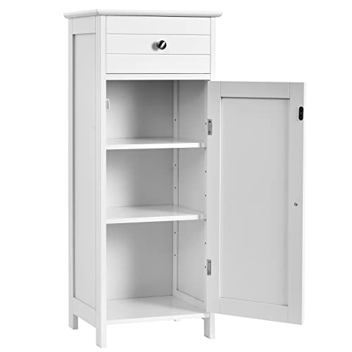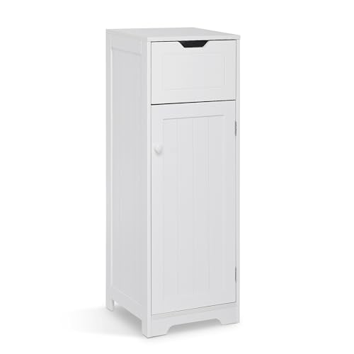 LIFEZEAL Badrumsskåp på golvet, toalettskåp i MDF med låda och justerbara hyllor, 35,5 x 30,5 x 88 cm, bottenpelare för vardagsrum, kök och hall (vit)