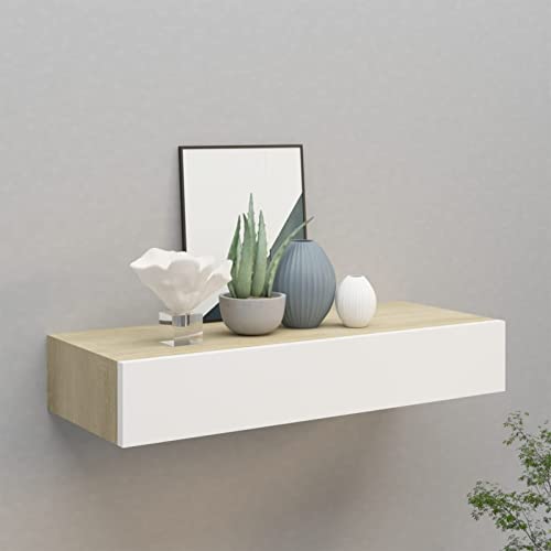 Rantry Skåp Vägghylla med låda Ek Vit 60 x 23,5 x 10 cm MDF, Vägghylla, Vägghylla, Vägghylla, Vägghylla Hängande Hylla för Entré Hylla