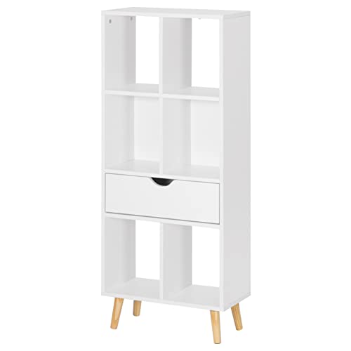 EUGAD Bokhylla Bokhylla Rumsavdelare Arkivställ Förvaringshylla Stående hyllenhet med låda med ben Tillverkad av MDF-trä, 6 fack, vit, 50x24x121cm 0012SHG
