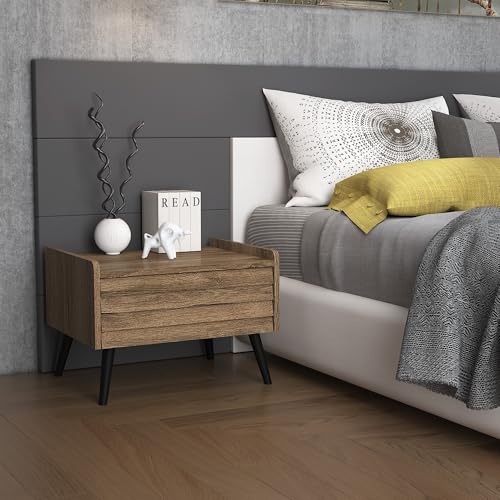 Hanah Home elegant valnöt nattstativ, 60 x 40 x 45 cm | 100% chipboard, 18 mm tjock, 26 mm MDF-låda med lock | Snygg förvaring för moderna sovrum