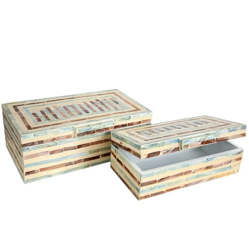 Romimex Blå vit guld pärlemor trä MDF dekorativa låda set (2 delar)