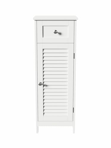 Mondeer Badskåp, smalt badrumsskåp med 1 låda, 1 dörr, 2 hyllor, 32 x 30 x 87 cm, vit, MDF-trä, lackerad, badrumsmöbler för badrum, kök, vardagsrum, entré