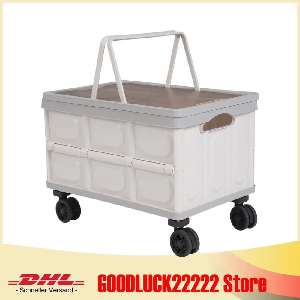 Hopfällbar förvaringsvagn - Transportvagn - MDF-skiva - Universella länkhjul - 55 l kapacitet - Hög bärförmåga - Grå