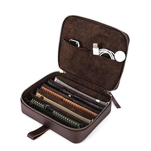 Hiram läderklockarmband fodral organiserare med handtag – bärbar förvaringslåda för Apple Watch och mekaniska band