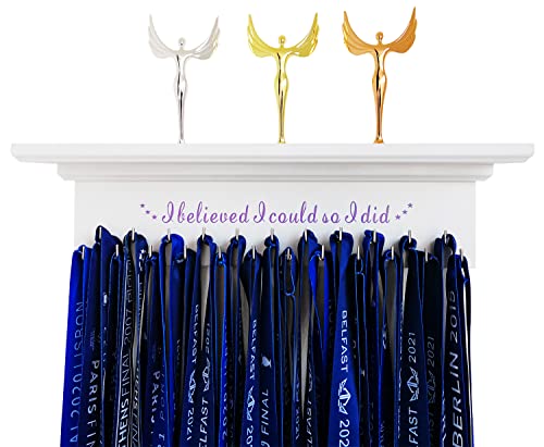 CREATCABIN Dansare medaljhållare medaljhängare medaljhylla visa väggmonterade hängande utmärkelser med troféhylla 4 rader håller 70+ medaljer present till dansare Balet Dansande vinnare Medalister 40