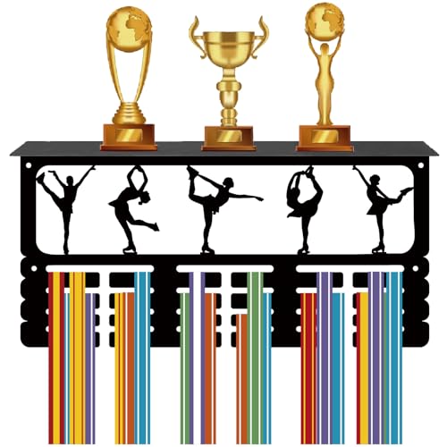 CREATCABIN Konståkning medalj hängare display trofé hylla skridskoåkning medaljhållare med hylla stativ sport 4 rader metall hängande väggmontering håller 70+ medaljer för tävling bandmedaljer 40 x 18