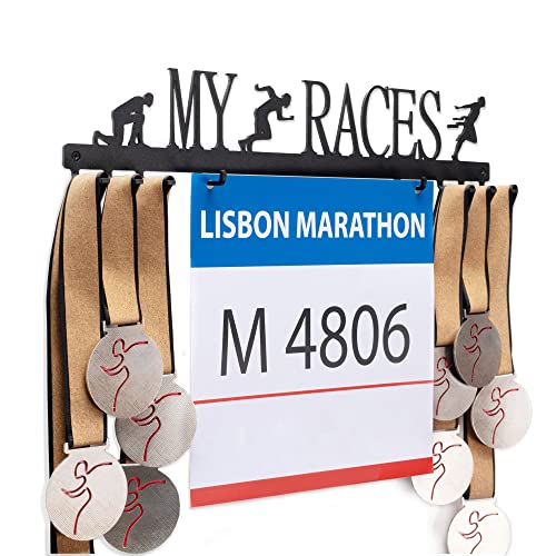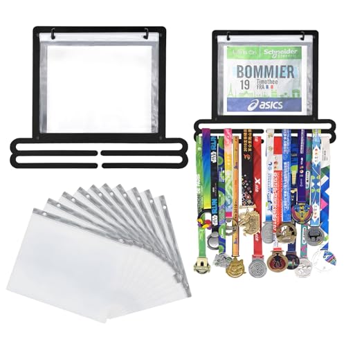 Löpmedalj och nummerlopp Display Krok - Medaljhållare för löpare - Hang your medals & Bibs - Marathon Black Rack Medal
