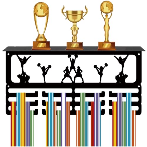 CREATCABIN Cheerleading medaljhängare display trofé hylla medaljhållare med hylla stativ sport 4 rader metall hängande väggmontering ram håller 70+ medaljer för Cheerlead tävling medaljer rack 40 x 18