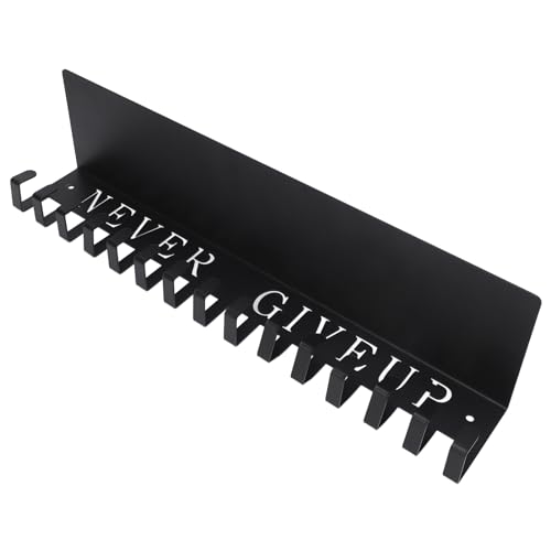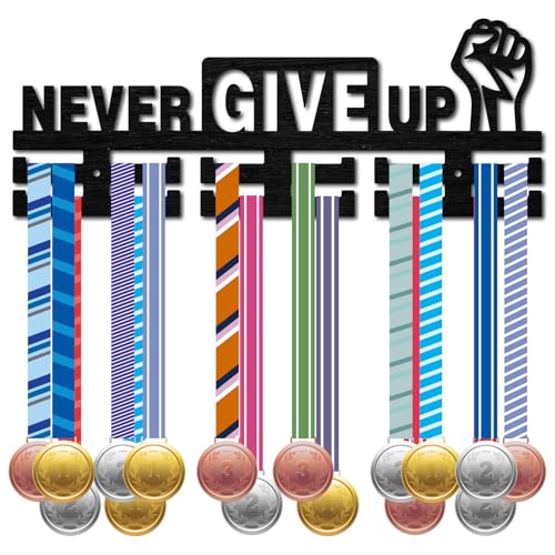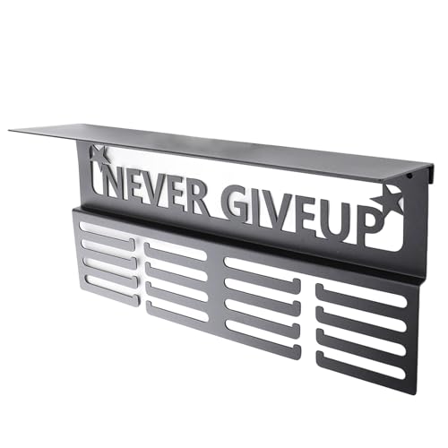 SUPERDANT Löpningstävling medaljhållare motiverande ord ALDRIG GE UPP-utrymme för 60+ medaljer svart järn väggmonterade krokar för tävling medaljhållare display vägg hängande 40 x 15 cm