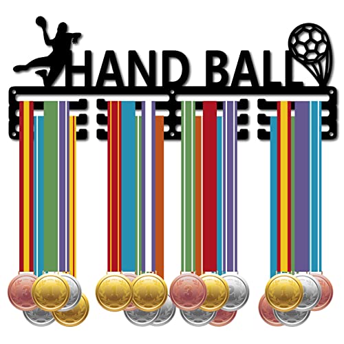 CREATCABIN Handboll medaljhängare visa sport medaljhållare över 60+ medaljer pris järnhållare ställning ram väggmonterad hängande för medaljör löpare gymnastik maraton idrottare gåva 40 x 15,9 cm